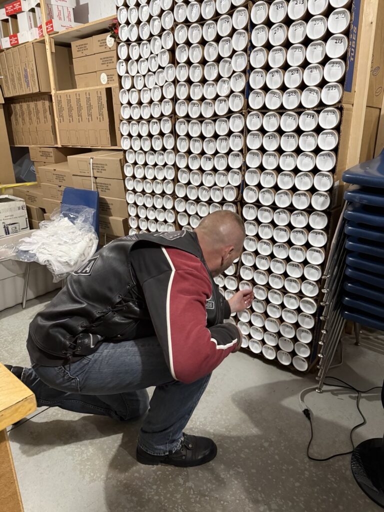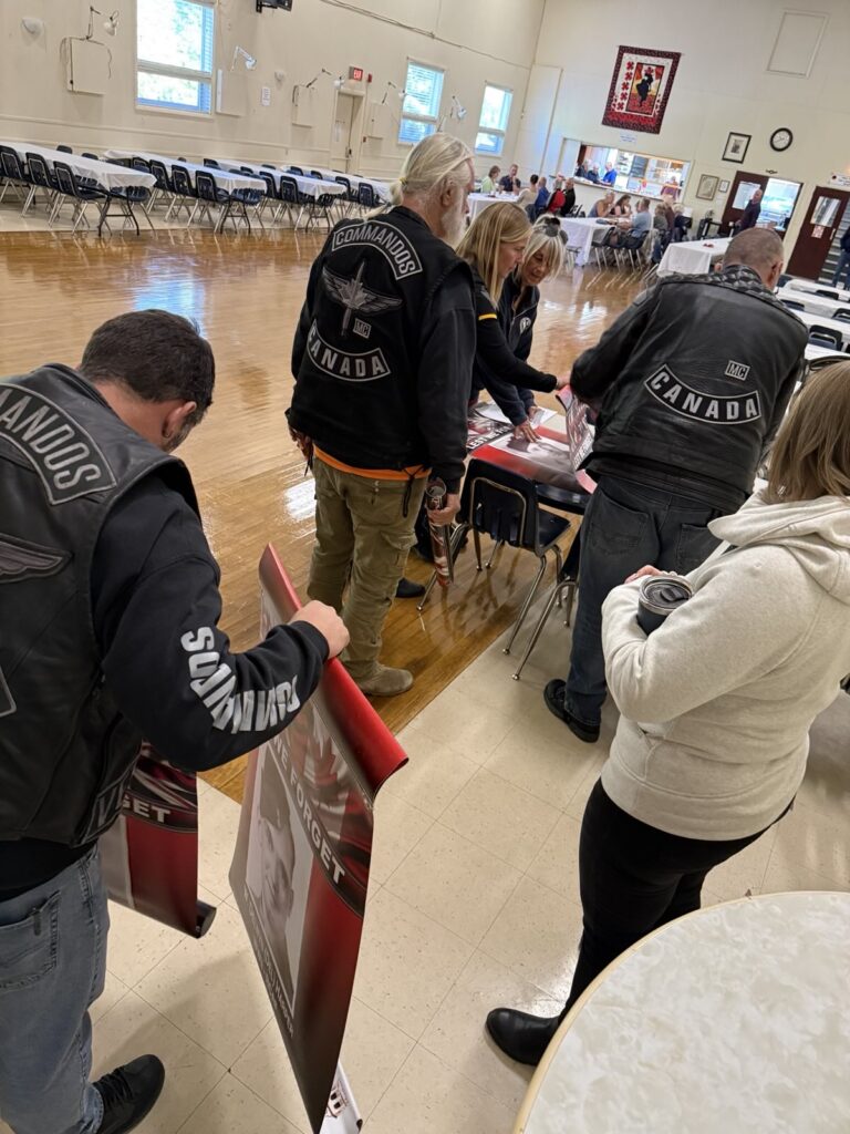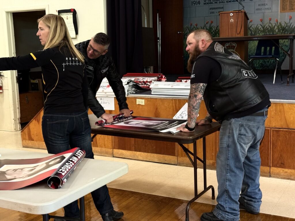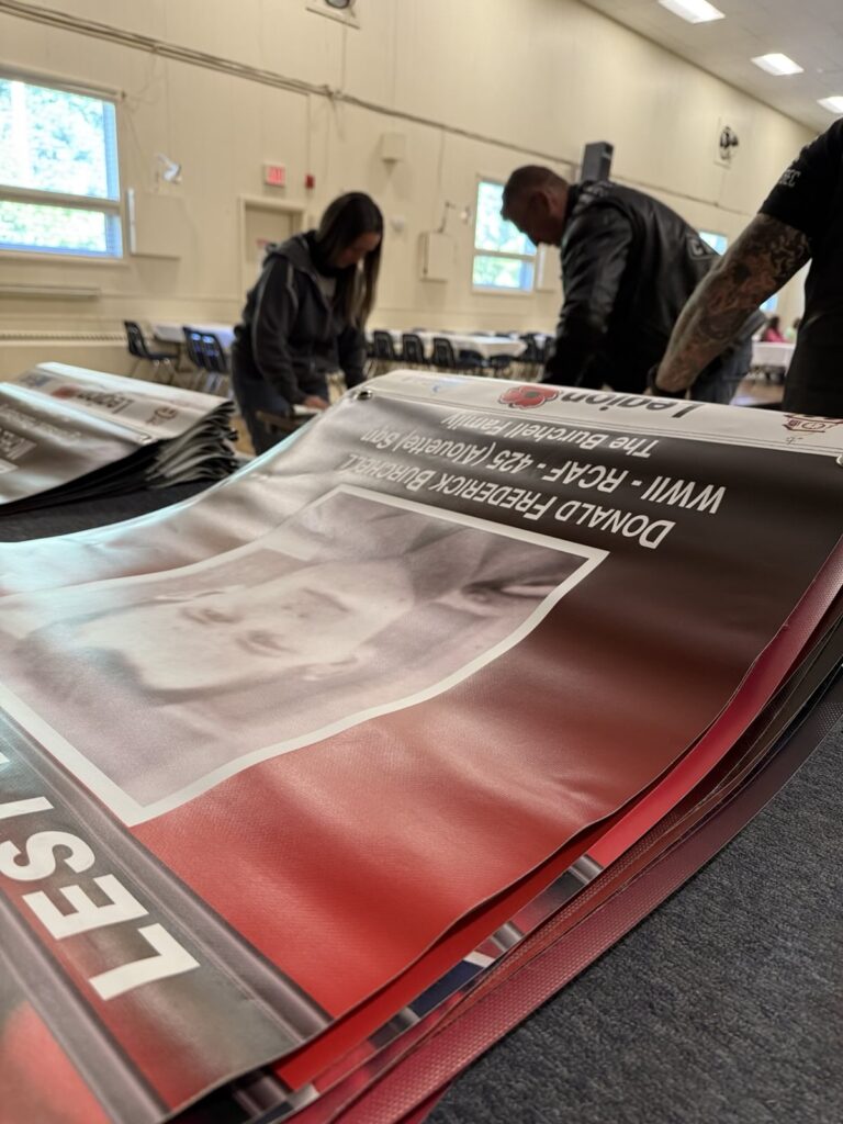 Members of the Twin Rivers Chapter assisted the Perth Legion with sorting the banners that will be installed by the various teams of volunteers ahead of the Motorcycle Parade honouring Veterans.